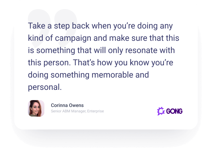 My favorite part of connecting with Corrina Owens, Senior ABM Manager, Enterprise at Gong, was hearing her talk about their UserGems program.