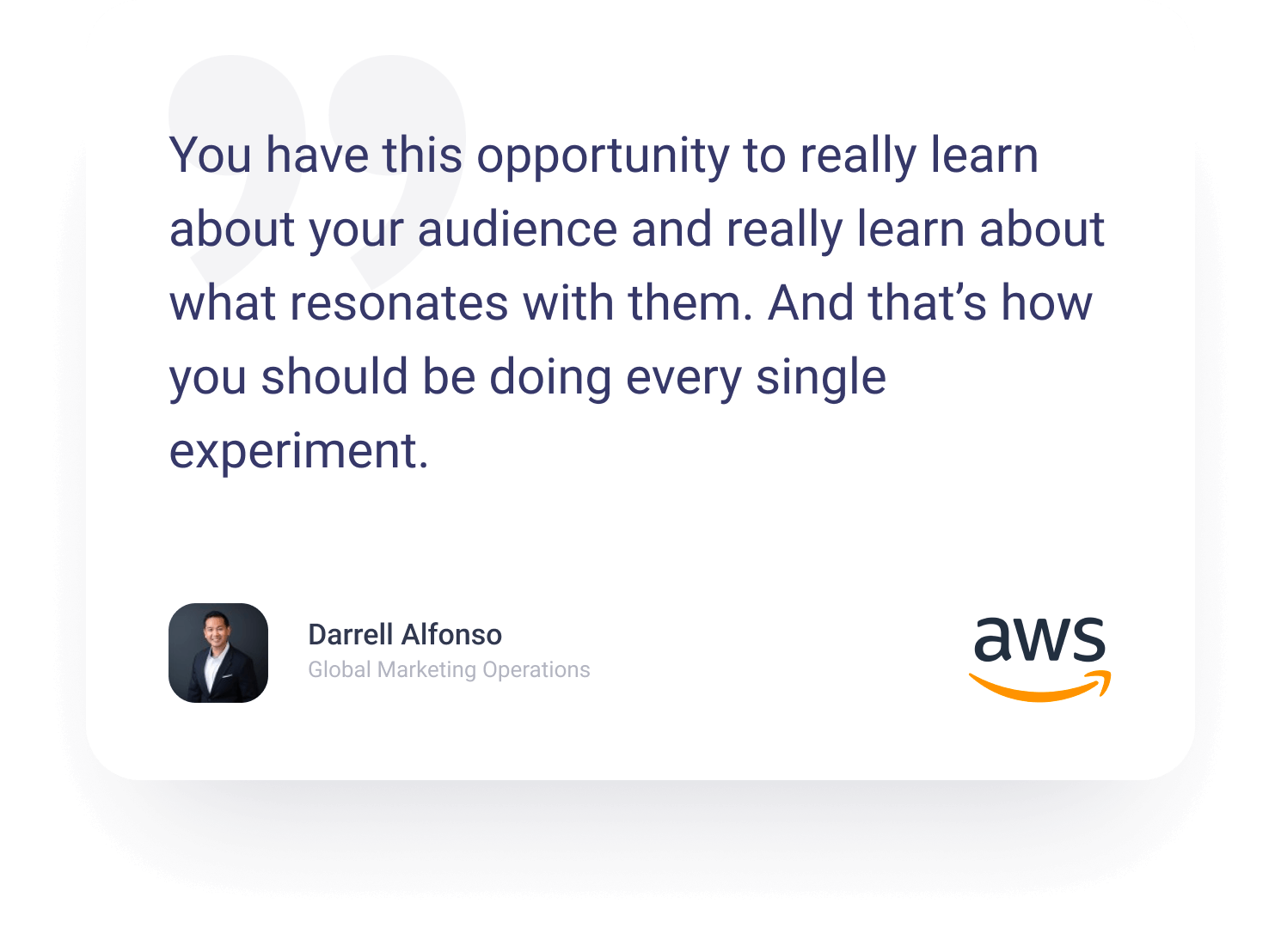 Darrell Alfonso, Global Marketing Operations at AWS, thinks you should approach each A/B test as an opportunity to learn about your audience and what resonates with them (and I fully agree).
