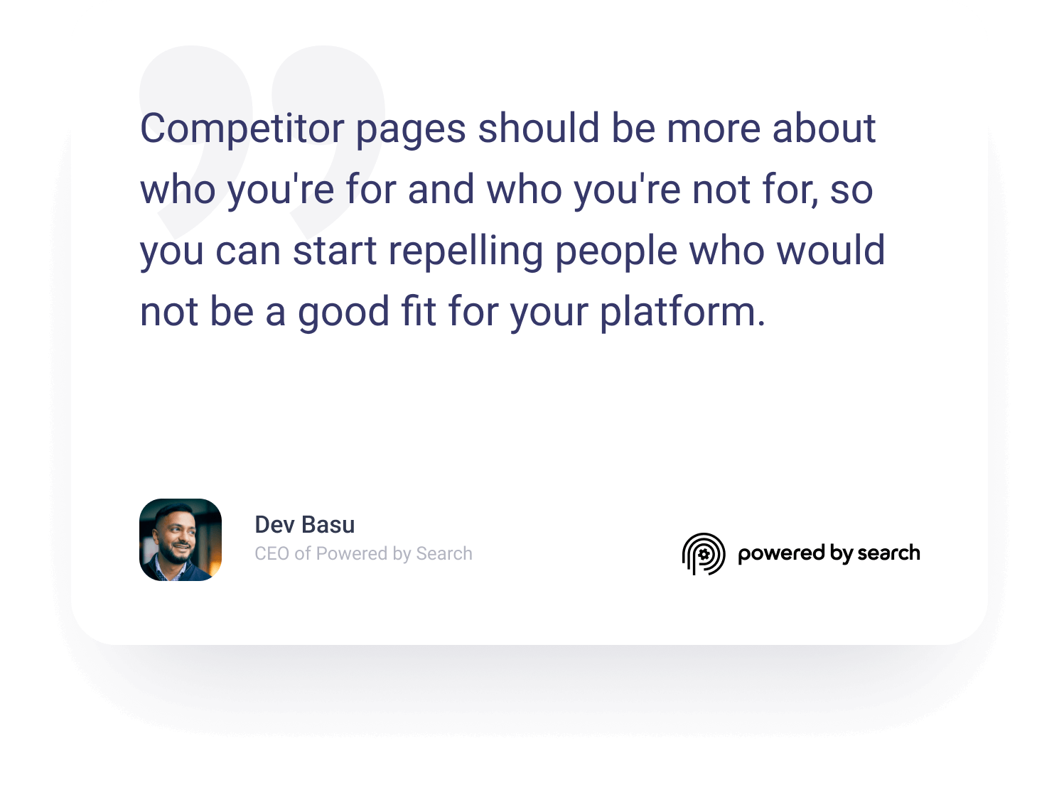 Dev Basu, CEO of Powered By Search, talked about how you can create competitor comparison pages that your prospects will actually want to read.