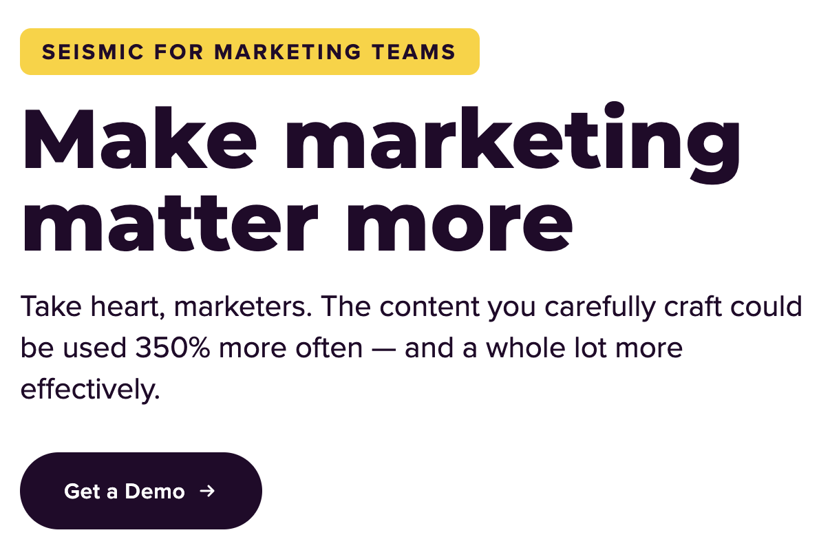 It’s clear from the messaging below that Seismic believes the biggest pain point for marketers is that their content isn’t used effectively.