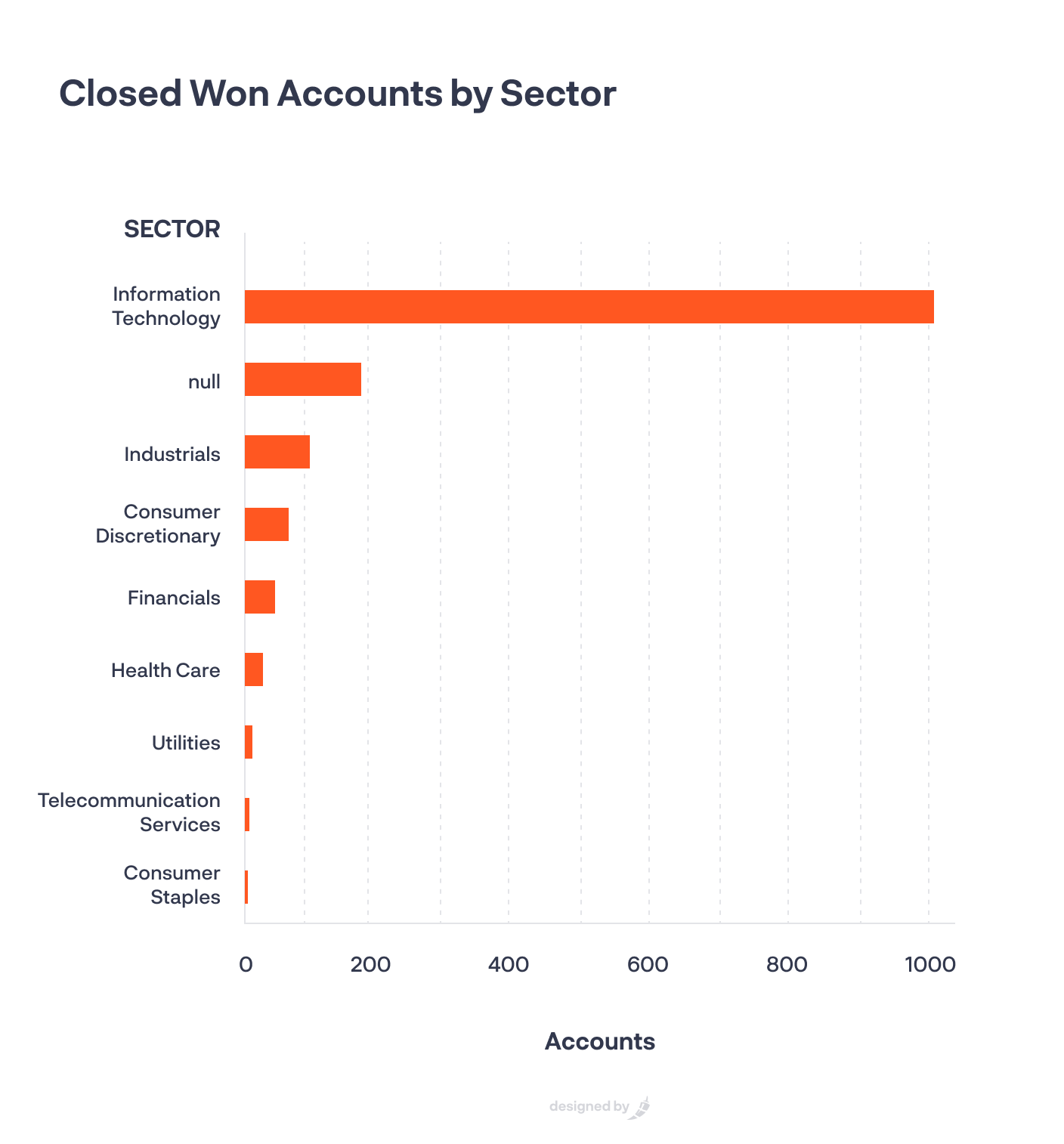 I’m able to use this same report to filter by industry. From this graph, we can see that Information Technology is by far the most common industry for existing Chili Piper customers.