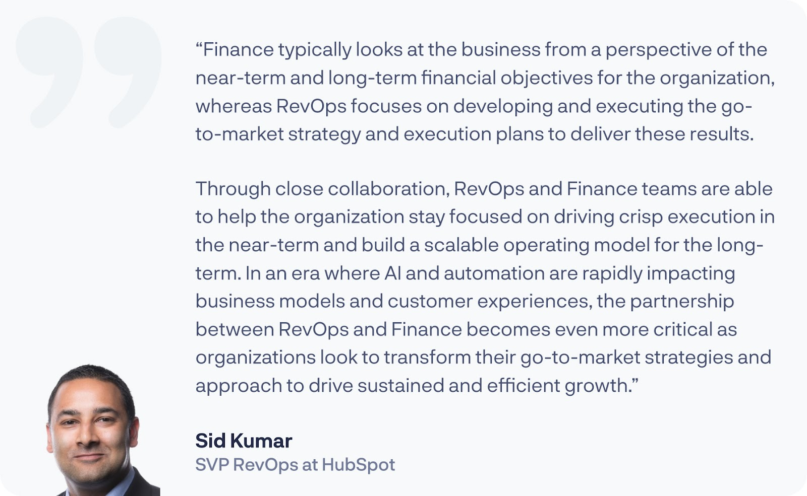 As RevOps identifies areas of need and plans resources for investment, they need to be aligned with leadership, including the CFO, and the managers of each department to fully understand how each department is operating, the goals they are working to achieve, and how those goals align to the overall company objectives.