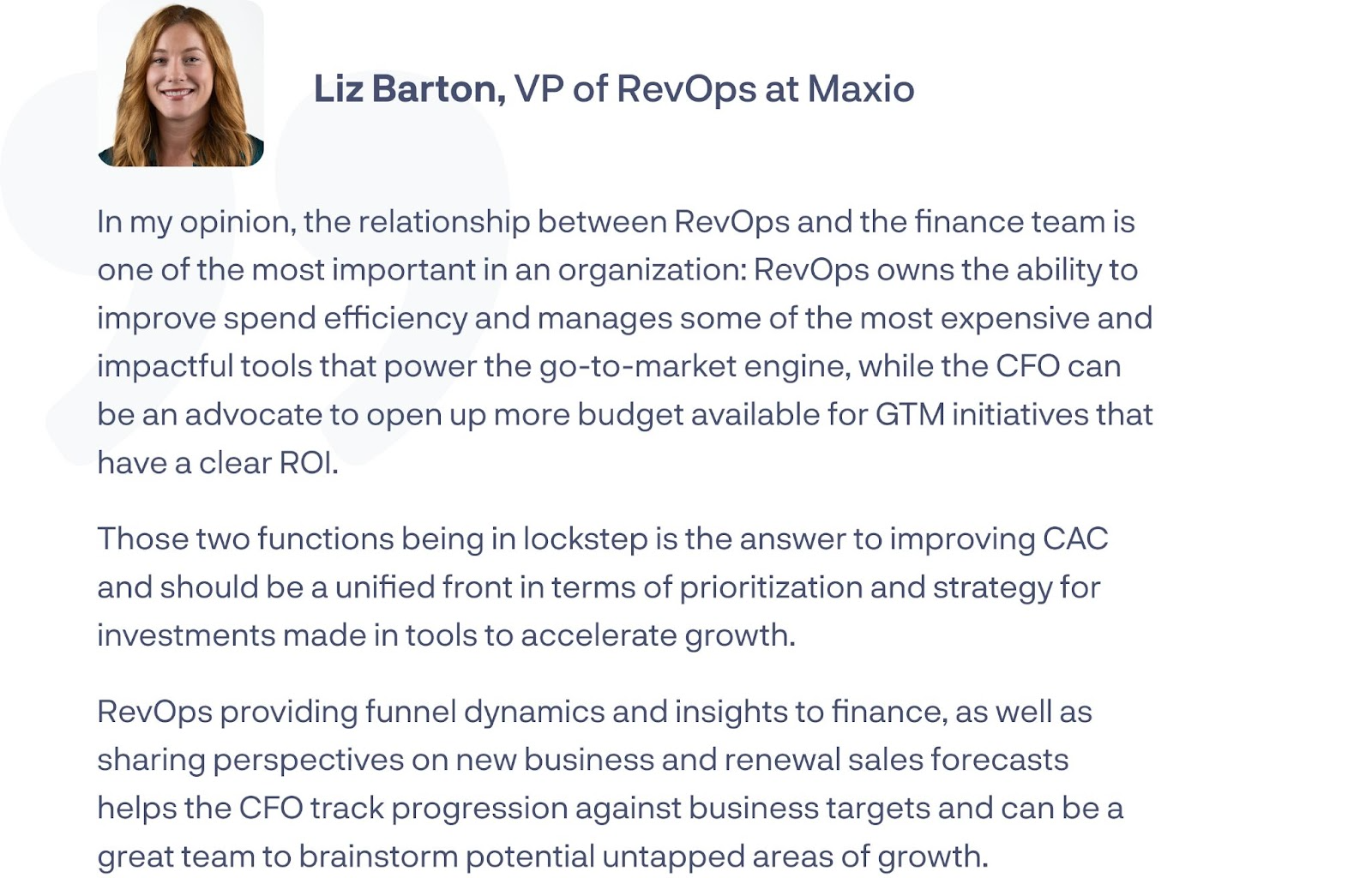 On the other side, CFOs can guide RevOps with insight into the health of the business and advise them as they invest into different initiatives that will progress efficiency and overall growth.