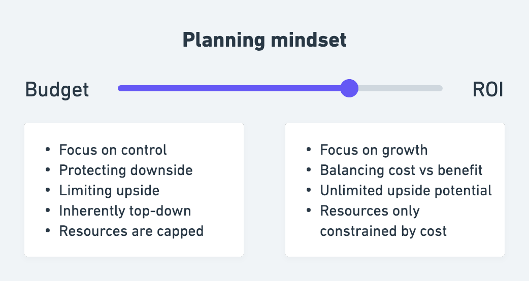 Going from a budget mindset to an ROI mindset is hard — especially in large or rigid companies. Here are the main principles to make it work: